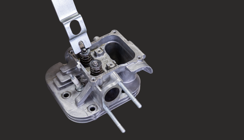 Overhead valve designs vary from one engine model to another. The parts and servicing steps in your overhead valve cylinder may differ from the approach that follows, which is based on the Briggs & Stratton Intek 6-HP single-cylinder OHV. The Intek does not require the use of a valve spring compressor, making valve removal and installation simple.