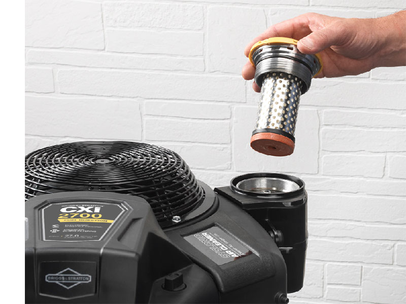 The Oil Xtend System is an optional feature on select Briggs & Stratton CXi Series V-Twin engines for commercial turf applications.