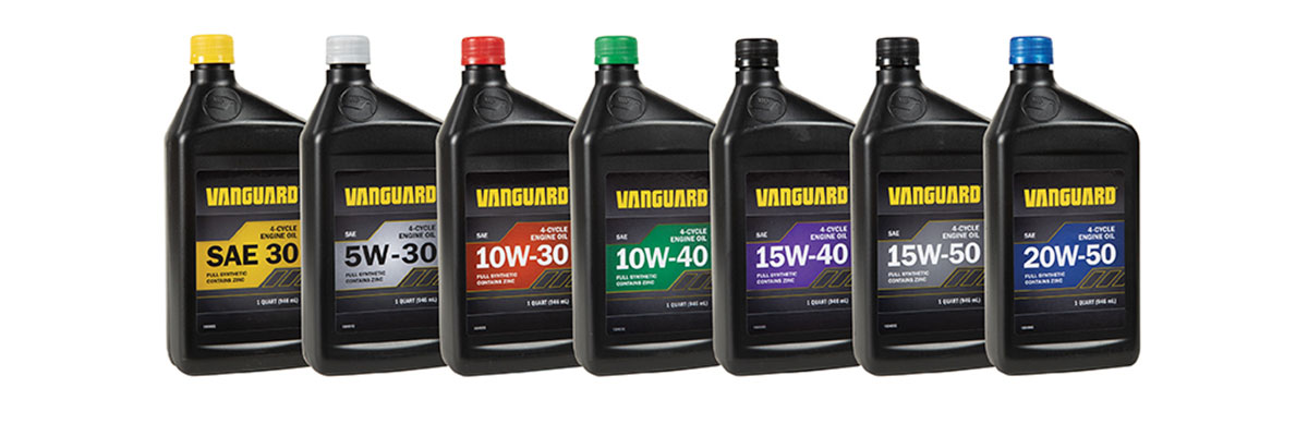 Vanguard Synthetic Commercial Engine Oils are available in the following viscosity grades: SAE 30, 5W-30, 10W-30, 10W-40, 15W-40, 15W-50, and 20W-50, and 2-cycle. Multiple bottle sizes are available as well as 5-gallon and 55-gallon drums to meet the unique needs of servicing dealers, landscaping contractors, and DIY customers.