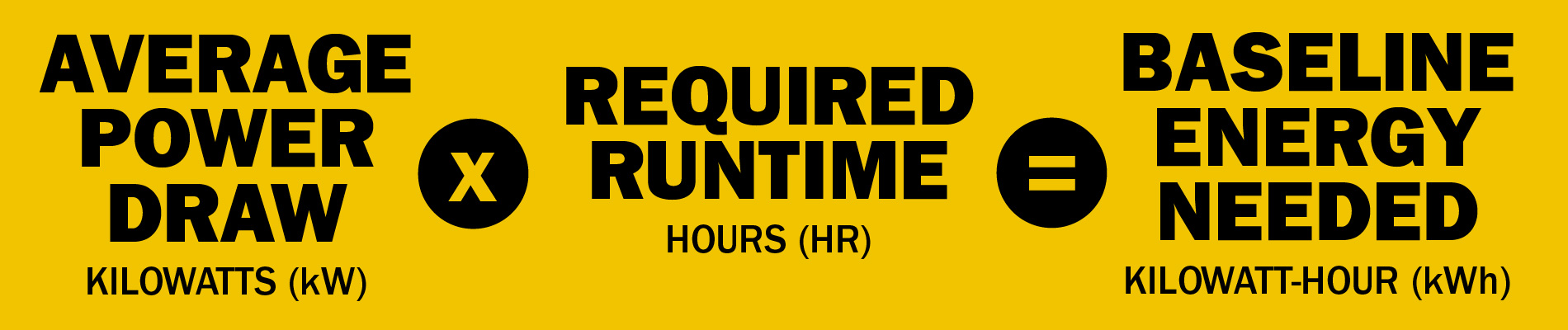 The process of determining your energy requirement begins with a simple formula. You use the data you’ve gathered to find the average power your machine consumes during operation and multiply it by the required runtime.